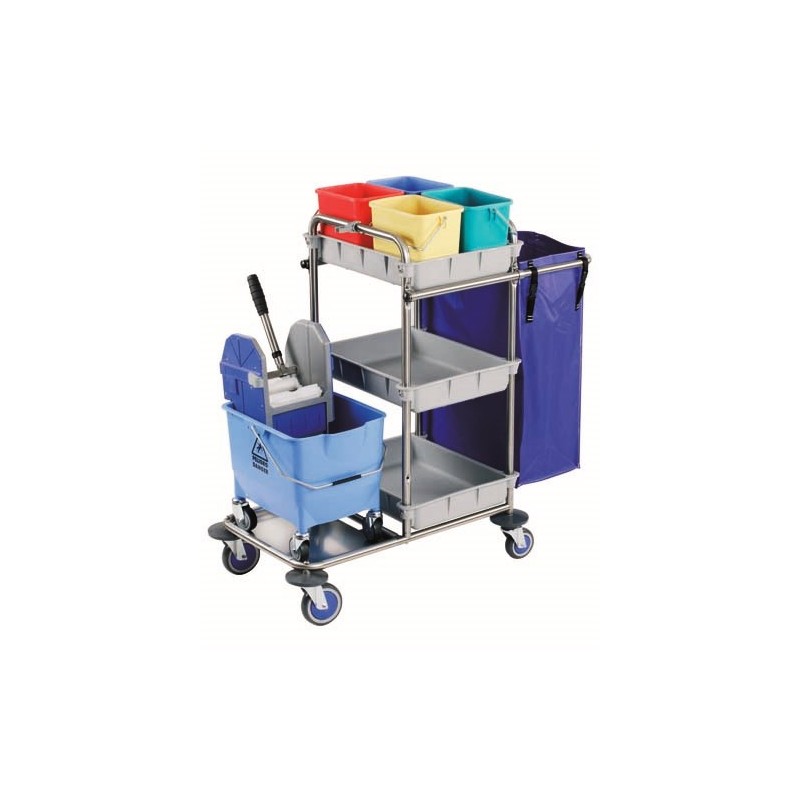 - Con cubo de 25 L con prensa y ruedas de 75 Ø mm para optimizar el proceso de limpieza.