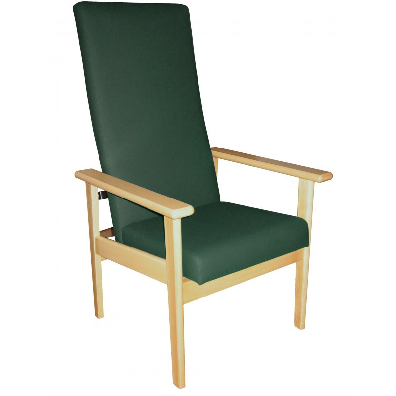 Este sillón geriátrico presenta un respaldo alto, que puede ser reclinable o fijo, ofreciendo un soporte optimo para la espalda y cuello.