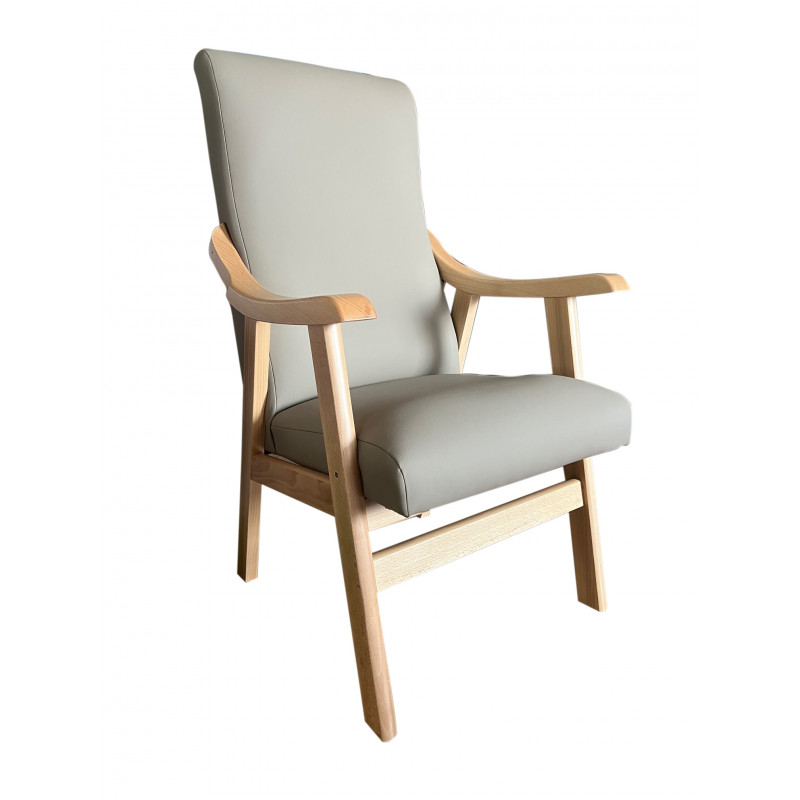 Sillón geriátrico respaldo alto fijo, fabricado en madera maciza de haya.